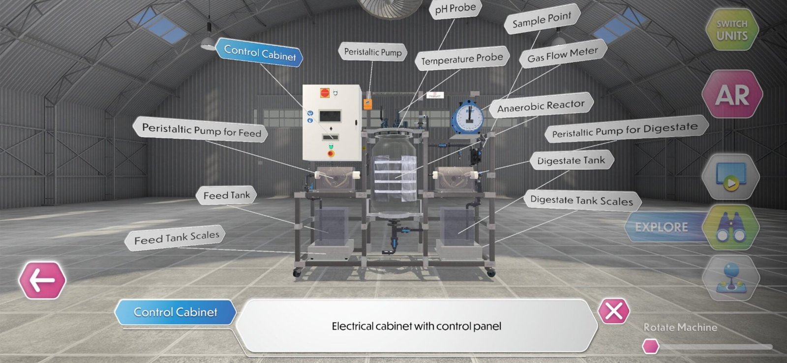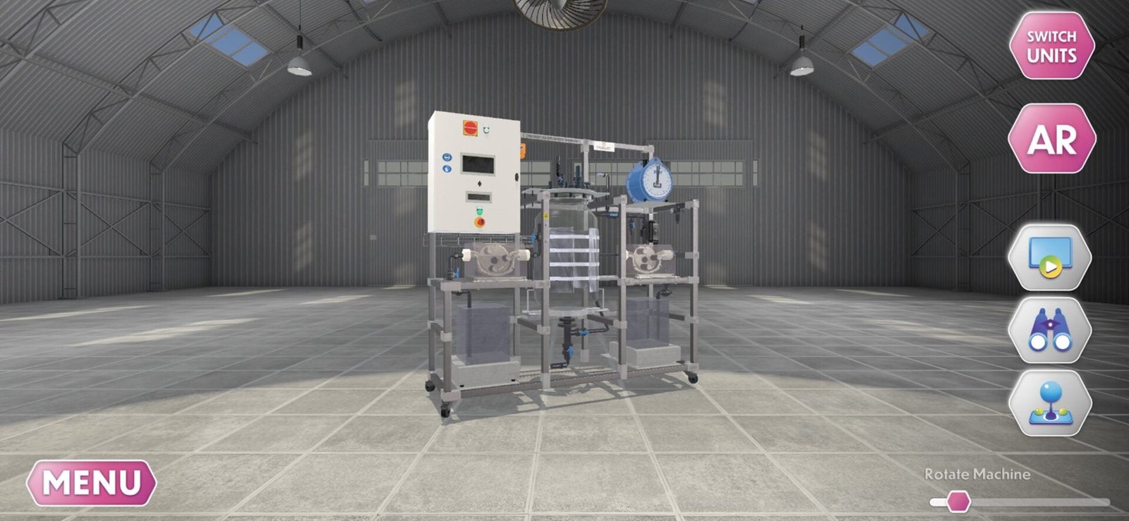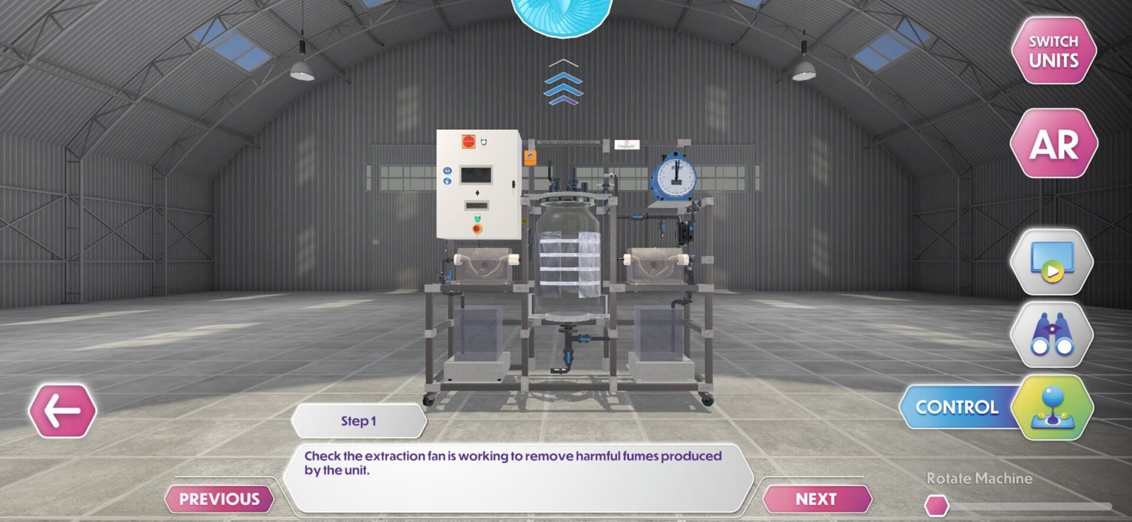 • It uses an exact 3D model representing the real-life machine, enabling students to ‘operate’ the machine using a mobile or tablet device, according to specified instructions. The user can rotate, zoom in/out and interact with the 3D model of the machine, becoming more familiar with the operations before actually using the real-life version.